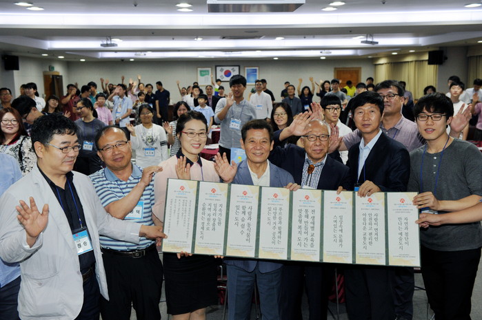△ 윤장현광주광역시장은시민참여단3차회의에 참석해 시민들이 직접 선정한 도시 미래상 주요 계획을 전달 받았다. |