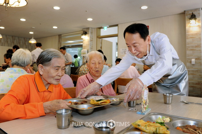 우범기 부시장은 이어 어르신들에게 점심 배식봉사를 하고 함께 식사를 하며 여러 의견을 듣기도 했다.