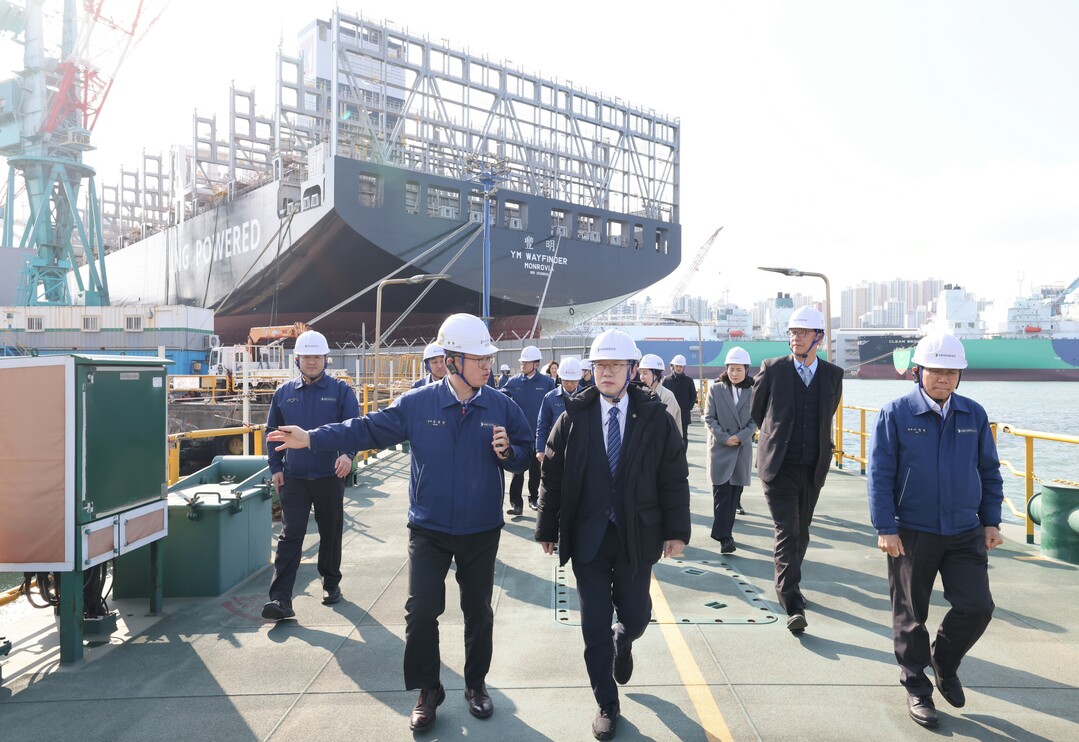 [부자동네타임즈 = 이현석 기자] 이명구 관세청장이 지난 12일 울산 동구 전하동 HD현대중공업을 방문해 조선산업 수출 현장을 살펴보고 있다. 2026.3.13 [관세청 제공]