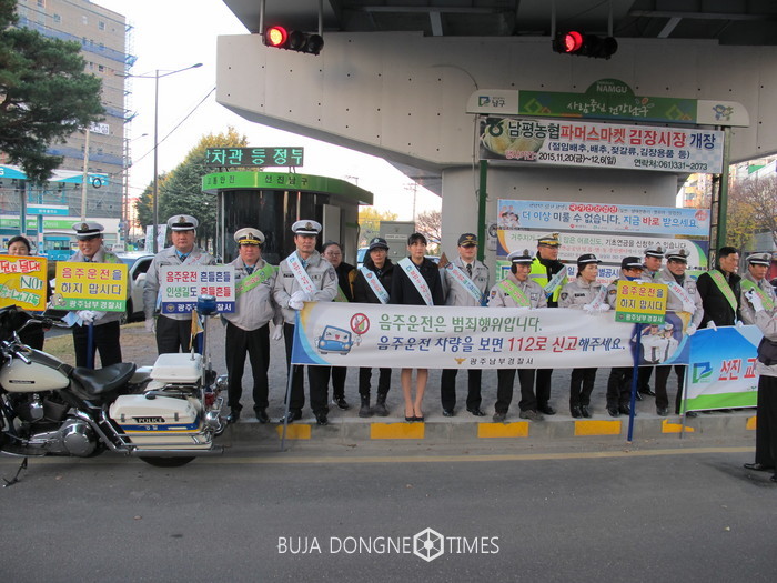 [광주=부자동네타임즈 손권일 기자]광주남부경찰서(총경 김재석)는 12월 7일 07:40~08:40경 남구 백운동 소재 백운광장에서 교통경찰, 남구청 모범운전사, 녹색어머니회 등 유관·협력단체 50여 명이 참석 음주운전 근절 분위기 조성을 위한 캠페인을 실시하였습니다.