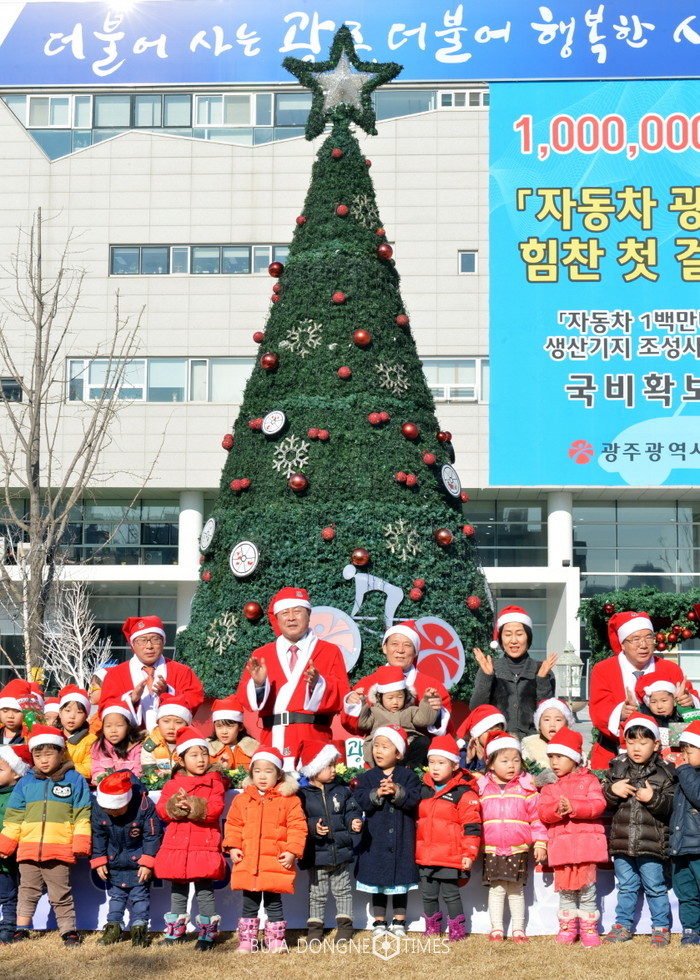 [광주=부자동네타임즈 손권일 기자]윤장현 광주광역시장은 12월 7일 오후 시청 앞 잔디광장에서 조영표 시의회 의장 등이 참석한 가운데 크리스마스 트리에 불을 밝혔다.