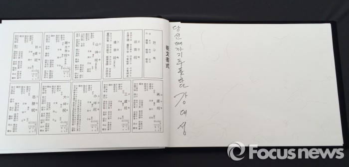 △ 서울광장에 설치된 고(故) 김영삼 전 대통령 분향소에 비치된 방명록 모습. <사진제공=포커스뉴스> |
