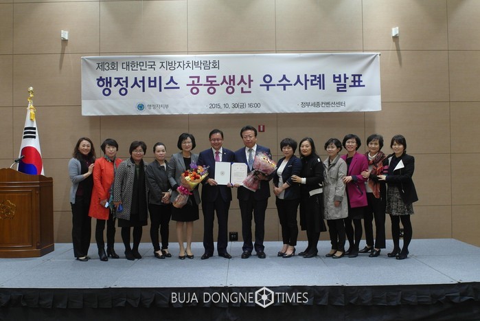 [광주=부자동네타임즈 손권일 기자]'제3회 대한민국 지방자치박람회 행정서비스 공동생산 우수사례 공모협력행정'분야에서 최우수상을 받았다. 시상식은 지난 10월 30일 세종시 정부세종컨벤션센터에서 열렸다. 주민참여로 행정서비스의 효율과 효과를 높인 지방자치단체에게 수여하는 이 상은 행정자치부가 지방자치 20주년을 맞아 기획한 평가다.