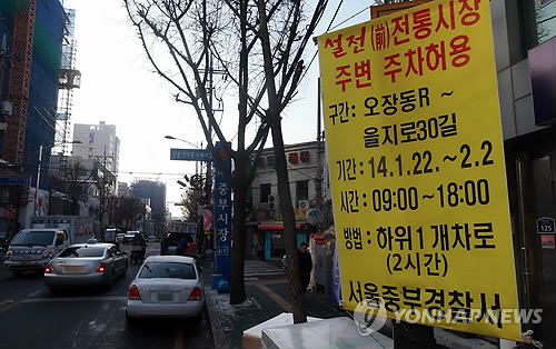 (서울=연합뉴스) 이정현 기자 = 서울시는 설을 맞아 7일부터 22일까지 시내 전통시장 120곳 주변 도로에 2시간 무료로 주·정차할 수 있게 한다고 5일 밝혔다.