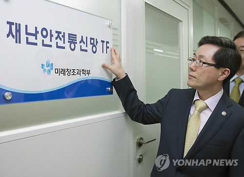 | △ '재난안전통신망 TF 현판식' 참석한 미래부 제2차관 (서울=연합뉴스) 30일 경기도 과천시 정부과천청사에서 열린 '재난안전통신망 TF 현판식'에 참석한 윤종록 미래창조과학부 제2차관. 2014.5.30 << 미래부 제공 >> photo@yna.co.kr |