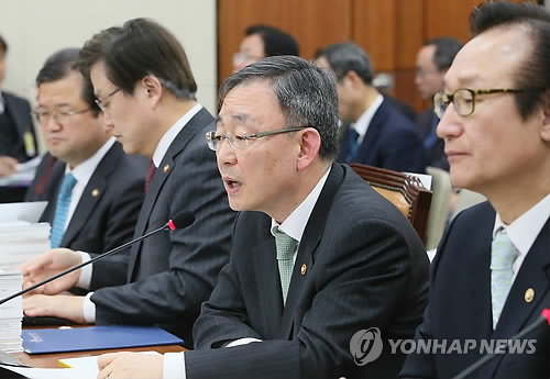 △ 답변하는 최성준 방송통신위원장 (서울=연합뉴스) 진성철 기자 = 최성준 방송통신위원장이 10일 국회 미래창조과학방송통신위원회에서 답변하고 있다. 왼쪽은 최양희 미래창조과학부 장관.