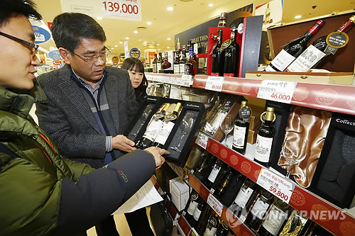 | △ 한국환경공단과 서울시청 관계자들이 지난해 1월 서울시내 한 대형 마트에서 설 선물세트 과대포장 등에 관한 현장 조사를 하고 있다. (연합뉴스 자료사진) |