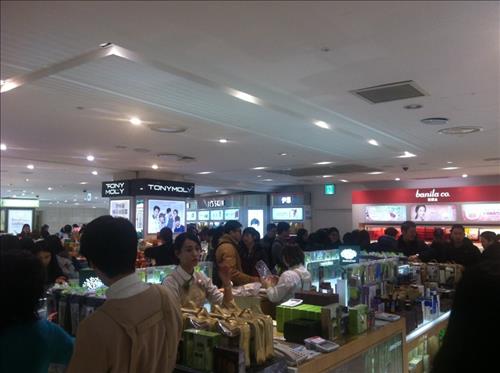 | △ (서울=연합뉴스) 중국 최대 명절 '춘제' 연휴(18~24일)가 시작된 18일 명동 백화점·면세점은 쇼핑에 나선 유커(遊客)들과 이들의 발길을 잡는 유통업체 직원들로 오전부터 북적거렸다. 사진은 롯데면세점 9층 화장품 매장을 가득 메운 중국 쇼핑객들. |