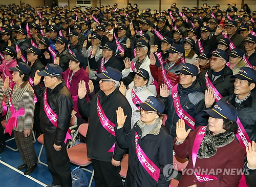 | △ '서울시 할아버지ㆍ할머니봉사대' 발대식에서 참석자들이 선서하고 있다. (연합뉴스 자료사진) |