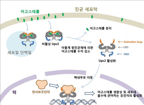 연구진은 이 연구에서 진균의 세포막 구성물질인 어고스테롤과 결합해 유전자 발현을 조절하는 전사인자 Upc2에 돌연변이가 생기면 항생제 내성이 크게 증가한다는 사실을 확인했다.