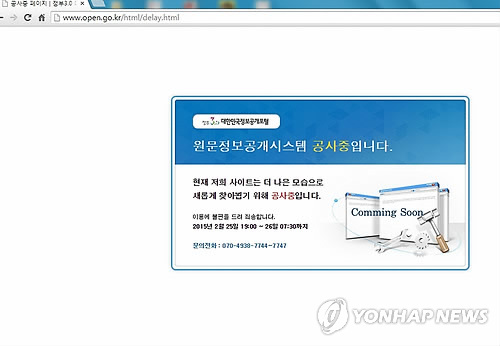 (서울=연합뉴스) 하채림 기자 = '정부3.0'의 대표 서비스인 대한민국정보공개포털(www.open.go.kr)이 대규모 정보유출로 12시간 넘게 가동을 멈추고 복구작업을 벌이고 있다.