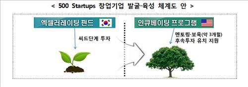 중소기업청과 한국벤처투자는 미국 실리콘밸리의 엑셀러레이터인 500스타트업스(500 Startups)와 함께 26일 오전 밀레니엄서울힐튼호텔에서 100억원 규모의 엑셀러레이팅 펀드를 조성하는 업무협약(MOU)을 맺었다.