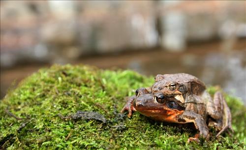 개구리는 물속에서 암컷이 산란을 시작하면 수컷이 알을 수정시킨다. 좀 이른 시기지만 운이 좋으면 개구리의 알, 올챙이, 개구리를 한 자리에서 관찰할 수도 있다.