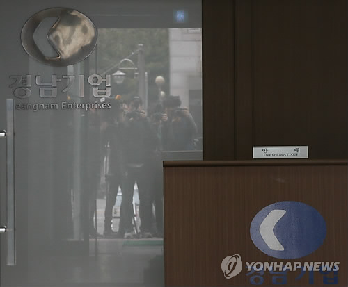 △ 검찰, '자원외교 비리 의혹' 경남기업 압수수색 (서울=연합뉴스) 박동주 기자 = 서울중앙지검 특수1부가 18일 한국광물자원공사와 경남기업의 아프리카 니켈광산 지분 거래와 관련해 서울 동대문구 답십리동 경남기업 본사를 압수수색 중인 가운데 이날 오전 취재진이 경남기업 본사 앞에서 대기하고 있다.