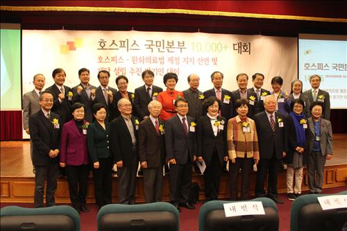 대회를 조직한 호스피스·완화의료 국민본부(이하 호스피스 국민본부)는 이날 개인 발기인 1만4천865명과 의료기관, 학술단체 등 관련 단체 80곳의 서명을 받아 호스피스 국민본부를 출범시켰다고 밝혔다.