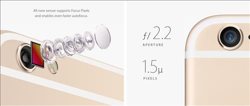 | △ 애플 아이폰6의 카메라 모듈. 5개의 렌즈가 겹쳐 있어 스마트폰 본체보다 두껍다. << 애플 홈페이지 캡처 >> |