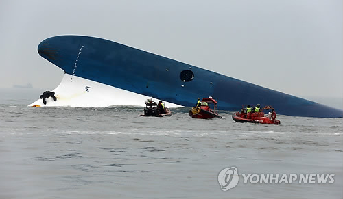| △ <세월호 참사 1년> 뱃머리만 남긴 세월호 (서울=연합뉴스) 세월호 참사가 발생한 지 16일로 1년이 된다. 상당수 국민은 충격과 슬픔에서 벗어나 일상으로 돌아갔지만 유족과 실종자 가족의 상처는 여전하다. 연합뉴스는 세월호 참사 1년을 뒤돌아 보고 그동안의 진상규명과 과정과 한국 사회의 안전 변화상, 개선방향을 점검한다. 사진은 2014년 4월 16일 오후 뱃 머리만 남기고 침몰하고 있는 세월호의 모습. 2015.4.6 << 연합뉴스DB >> photo@yna.co.kr |