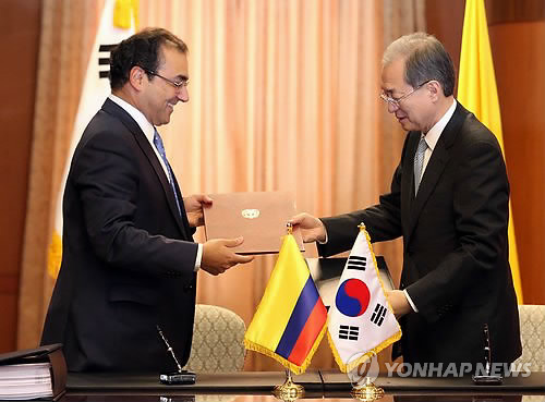 | △ 지난 2013년 2월에 열린 한-콜롬비아 FTA 서명식 (연합뉴스 자료사진) |