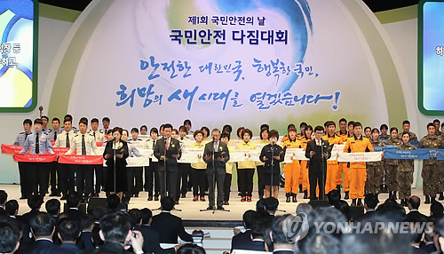 (서울=연합뉴스) 하채림 황철환 기자 = 정부는 세월호 참사 1주년인 16일 서울 강남구 코엑스 오디토리움에서 제1회 국민안전의 날 국민안전다짐대회를 개최했다.