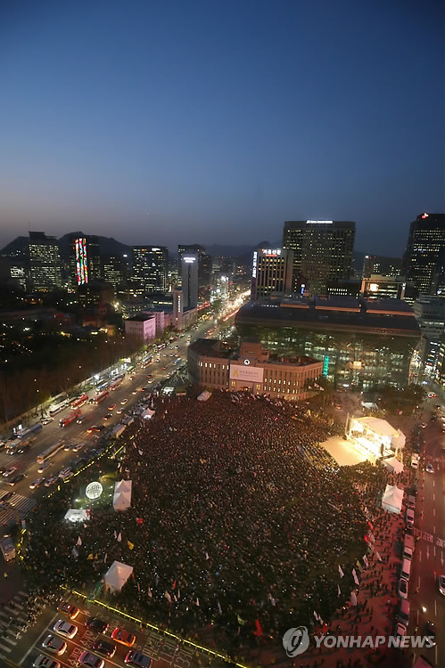 범국민대회 참가자들은 대회를 마친 뒤 '청와대 인간 띠잇기'를 위해 청와대 방면으로 이동할 예정이어서 경찰과의 충돌이 우려된다.