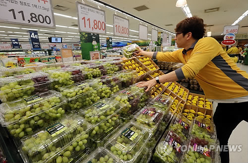 | △ 대형 마트의 과일 진열대(연합뉴스 자료사진) |