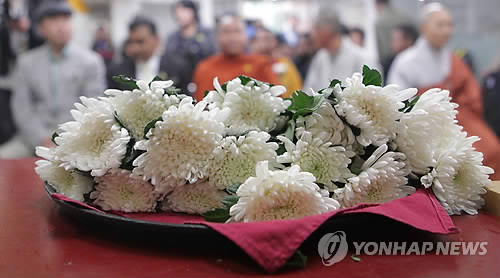 분향소 앞쪽에 차려진 제단은 100여 송이의 새하얀 국화로 꾸며졌고, 참석자들이 헌화할 수 있는 국화도 낱개로 마련됐다.