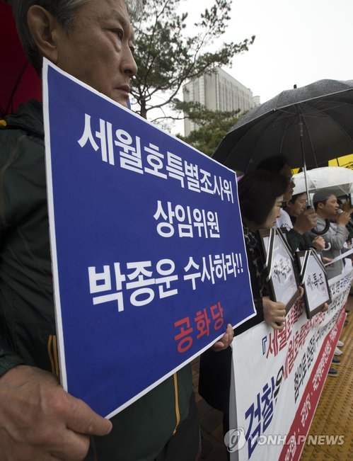 (서울=연합뉴스) 황철환 기자 = 자유청년연합 등 보수성향 시민단체들은 29일 이석태 세월호 특별조사위원장과 조사위원 3명을 국가공무원법 위반 혐의로 검찰에 고발했다.