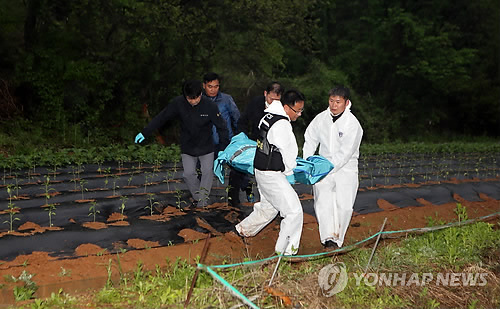 △ '잠적 무기수' 홍승만 변사체로 발견 (창녕=연합뉴스) 최병길 기자 = '잠적 무기수' 홍승만이 29일 오후 숨진 채 발견된 경남 창녕군 장마면 야산에서 경찰이 변사체를 수습하고 있다. |