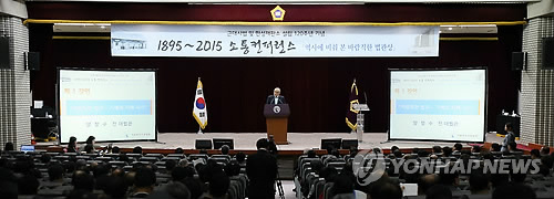 △ 11일 오후 서초동 서울법원종합청사에서 열린 '근대사법 및 한성재판소 설립 120주년 기념 1895-2015 소통 컨퍼런스'에서 양창수 전 대법관이 강연을 하고 있다. |