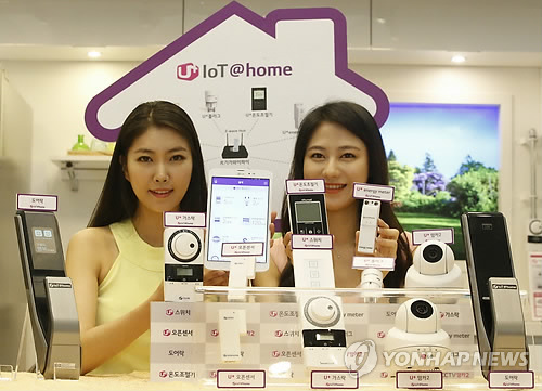 (서울=연합뉴스) 한지훈 기자 = LG유플러스[032640]가 17일 가정에서 사용할 수 있는 사물인터넷(IoT) 서비스 6가지를 처음 선보였다.