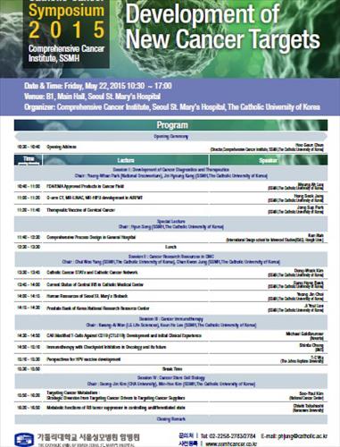 서울성모병원 암병원(암병원장 전후근)이 '새로운 암 표적 치료법 개발'을 주제로 개최하는 이번 심포지엄에는 국내외 제약사와 임상연구기관(CRO) 등 17곳이 참가한다. 또 가톨릭중앙의료원 산하 8개 부속병원에서도 350여명의 임상 전문가가 참석할 예정이다