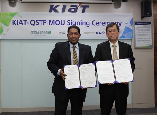 이날 서울 역삼동 한국기술센터에서 열린 MOU 서명식에서는 정재훈 KIAT 원장과 하마드 알 쿠웨리 QSTP 대표가 참석했다.