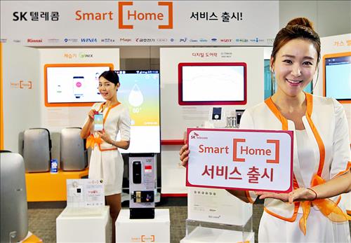 (서울=연합뉴스) 한지훈 기자 = SK텔레콤[017670]은 20일 협력사들과 손잡고 개발한 가정용 사물인터넷(IoT) 기기를 선보이며 스마트홈 서비스를 선도하겠다는 비전을 발표했다.