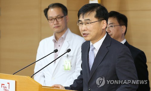| △ 메르스 주의사항 말하는 김우주 감염학회 이사장 (서울=연합뉴스) 황광모 기자 = 대한감염학회 이사장인 김우주 고려대학교 의대 교수가 21일 오후 서울 세종로 정부서울청사에서 열린 중동호흡기증후군(MERS) 국내 환자 조치 관련 브리핑에서 메르스 감염 예방을 위한 주의사항을 말하고 있다. 질병관리본부는 '중동호흡기증후군(메르스)'의 세 번째 감염자가 확인됐다고 밝혔다. 세 번째 감염자는 첫 감염자와 같은 병실을 쓰던 70대 남성으로, 가족이 아닌 첫 번째 2차 감염자다. |