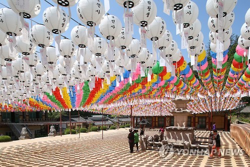 △ 석가탄신일을 앞둔 21일 경기도 남양주시 운악산 봉선사에서 신도들이 탑돌이를 하고 있다. |