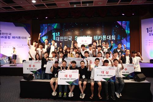(서울=연합뉴스) 양정우 기자 = 미래창조과학부는 지난달 29∼31일 경기 판교테크노밸리에서 '제1회 대한민국 해카톤 대회'를 개최하고 대상 수상팀으로 '삼김구출대작전'과 '타임비드'팀을 선정했다고 1일 밝혔다.
