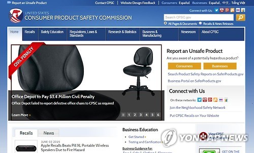 | △ 애플 '비츠 필 XL' 스피커 리콜 공지문 (샌프란시스코=연합뉴스) 임화섭 특파원 = 전세계 시가총액 제1위 기업인 애플이 작년에 인수한 비츠 일렉트로닉스의 무선 스피커 '필 XL'을 리콜했다. 배터리가 과열돼 화재 안전 문제를 일으킬 수 있다는 이유에서다. 미국 연방정부기관인 소비자제품안전위원회(CPSC)에 따르면 애플은 이 제품에 대해 8건의 과열 사례 신고를 접수했다. 사진은 CPSC 홈페이지의 리콜 공지. (CPSC 홈페이지 캡처) solatido@yna.co.kr |