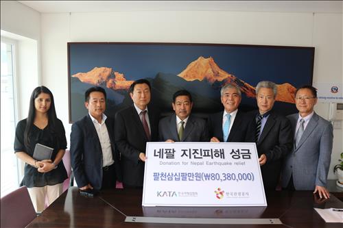 (서울=연합뉴스) 전준상 기자 = 한국여행업협회와 한국관광공사는 네팔 대지진 피해자를 위로하고 한국·네팔간 여행교류를 활성화하기 위해 9일 주한 네팔대사관에 성금 8천만원을 전달했다.