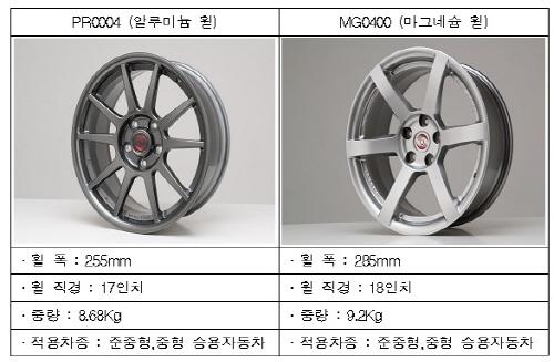 협회에 따르면 PR0004(알루미늄 휠)제품은 일반 휠과 비교해 20∼30% 무게를 줄였는데도 내구성이 동일하고, MG0400(마그네슘 휠)제품은 국내 최초로 개발된 마그네슘 휠로 일반 휠보다 28∼35% 무게를 줄이고 연비를 5∼10% 절감하는 특성이 인정됐다.