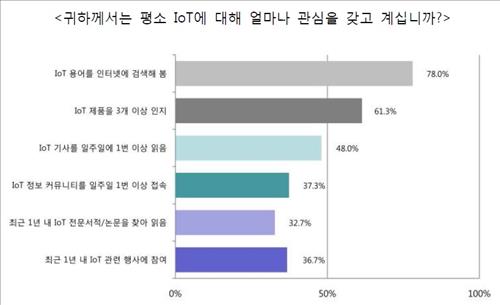 또 최근 1년 내 IoT 전문서적이나 논문을 검색했거나 IoT 관련 행사에 참여하는 등 적극적인 활동을 한 경우는 각각 32.7%, 36.7%로 조사됐다.