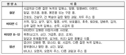 | △ 각 영양소 섭취에 좋은 음식들 ※출처: 국가건강정보포털 |