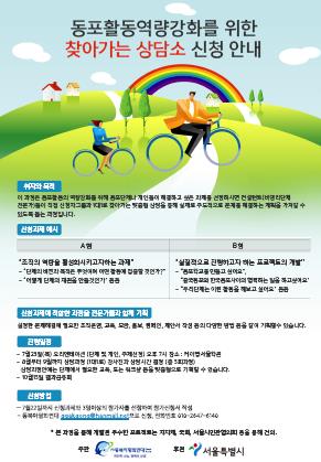 상담 주제는 리더십 강화, 조직 운영, 대외 홍보, 기금 모금, 사업 제안서 작성 등이다.