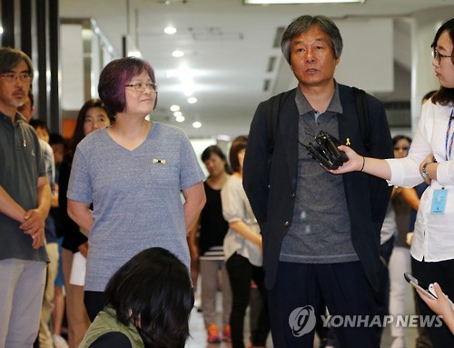 △ 질문에 답하는 4.16연대 박래군, 김혜진 위원 (서울=연합뉴스) 최재구 기자 = 4.16추모집회를 주도한 혐의로 사전구속영장이 신청된 박래군 상임위원과 김혜진 운영위원이 16일 영장실질심사를 받기위해 서초구 서울중앙지법으로 들어서며 기자의 질문에 답하고 있다. jjaeck9@yna.co.kr |