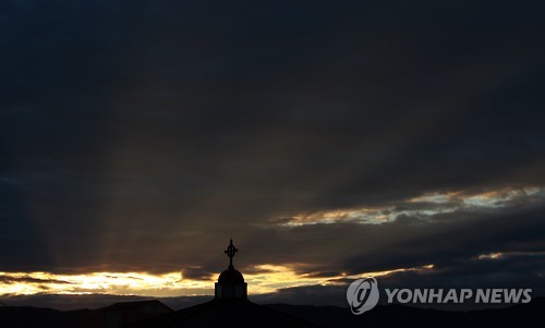 △ 시시각각 변하는 아침 하늘 제11호 태풍 '낭카'가 북상하는 17일 오전 강원 춘천시내 위로 아침 해가 떠오를 채비를 하고 있다. |