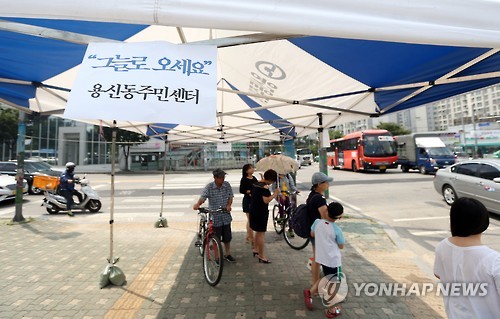 △ '그늘로 오세요' 서울 지역에 올해 첫 폭염 경보가 발효되는 등 전국에 무더위가 기승을 부린 7일 오후 서울 동대문구청 앞 교통섬에 햇빛을 막아주는 그늘막이 설치돼 있다. |