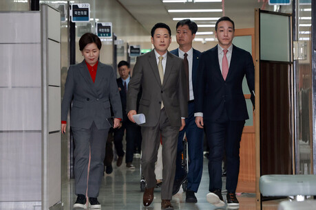 (서울=포커스뉴스) 설날을 나흘 앞둔 4일 오전 서울 서대문우체국을 찾은 김무성(왼쪽 세 번째) 새누리당 대표가 인사말을 하고 있다.