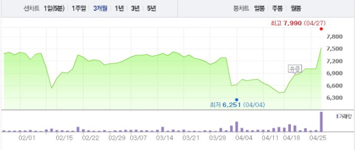 다날 측은 “지난해 휴대폰 결제 한도가 30만원에서 50만원으로 상향되면서 구입 가능한 아이템이 다양해졌다”며 “소셜커머스와 오픈마켓의 급속한 성장과 함께 거래액이 확대, 매출로 이어진 것으로 분석된다”고 말했다.주가흐름<사진출처=네이버 캡쳐>