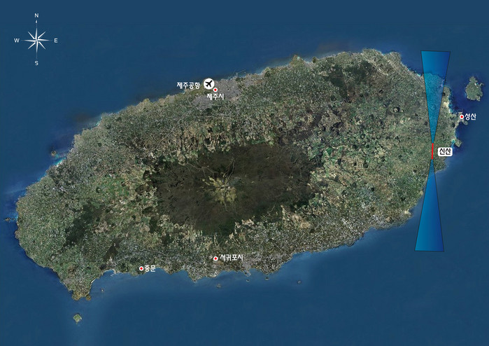 제2공항의 최적 입지로 검토된 신산은 기존 제주공항과 공역이 중첩되지 않아 비행절차 수립에 큰 문제가 없고 기상 조건이 좋다.