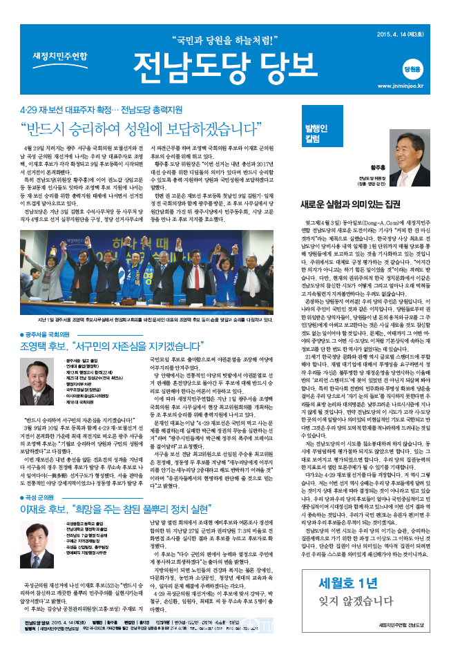 △ 새정치민주연합 전남도당 ‘4월 당보(黨報)’.