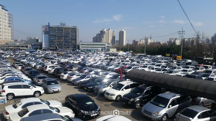 | △ 상품용 중고자동차가 전시되어 있는 국내 최대 서울장안평 중고자동차매매시장 전경. |